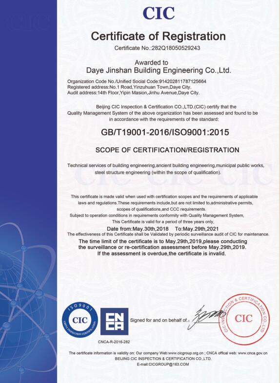 大冶金山建筑工程有限公司是一家專業(yè)從事建筑安裝總承包、園林古建筑、園林綠化景觀工程、文物修繕、市政道路工程、鋼結(jié)構(gòu)工程等綜合型施工企業(yè),公司具有資本投資運(yùn)營合作實(shí)力。
